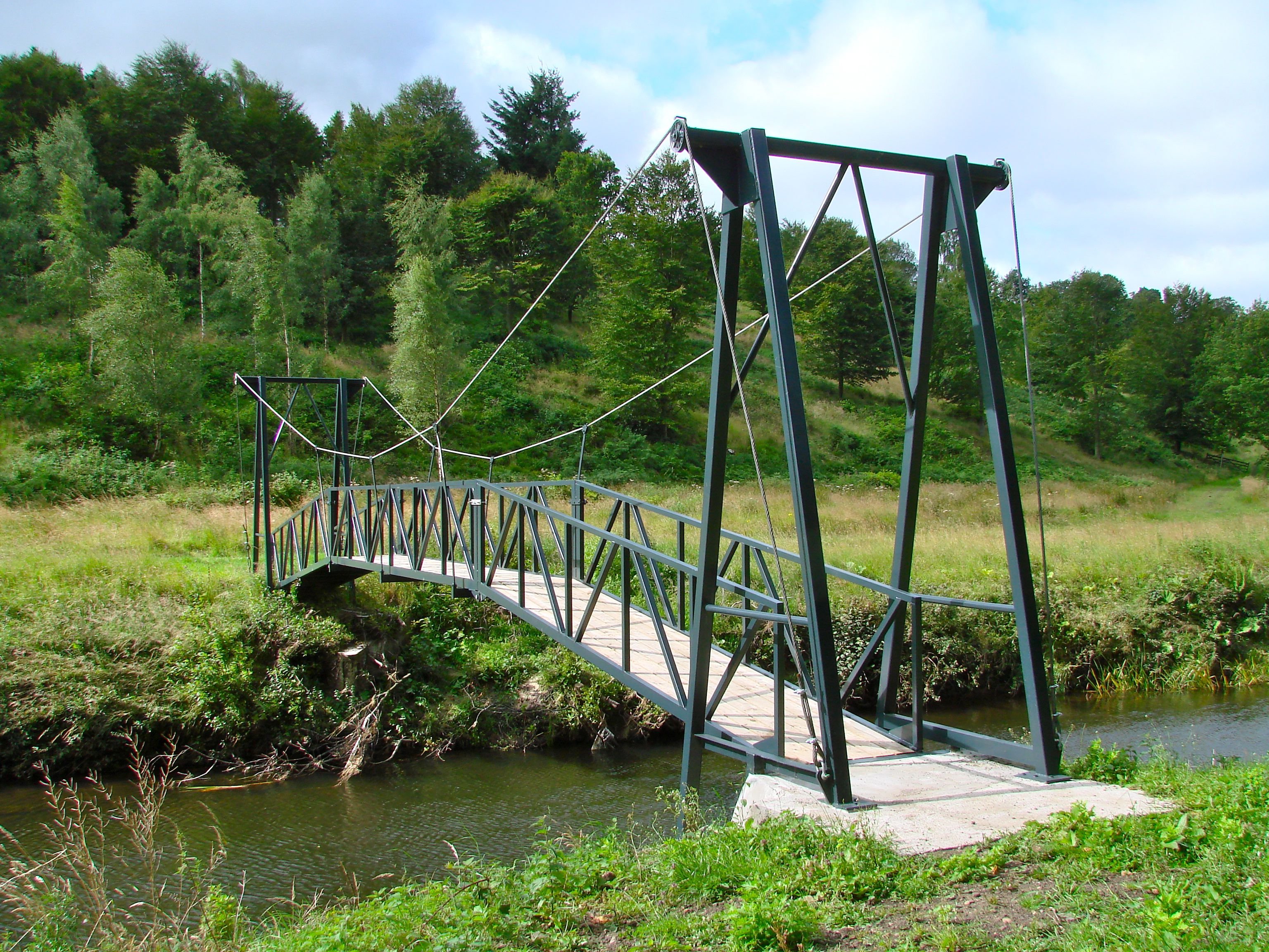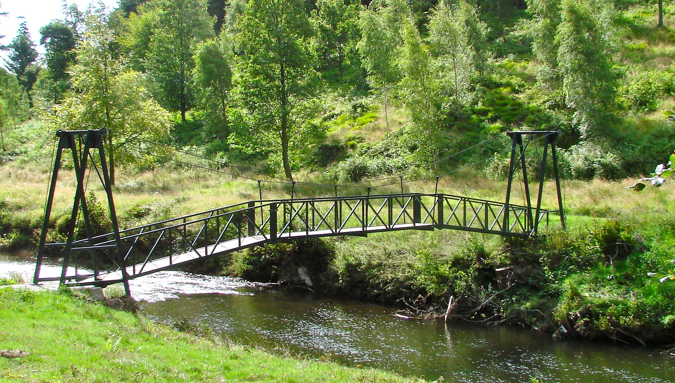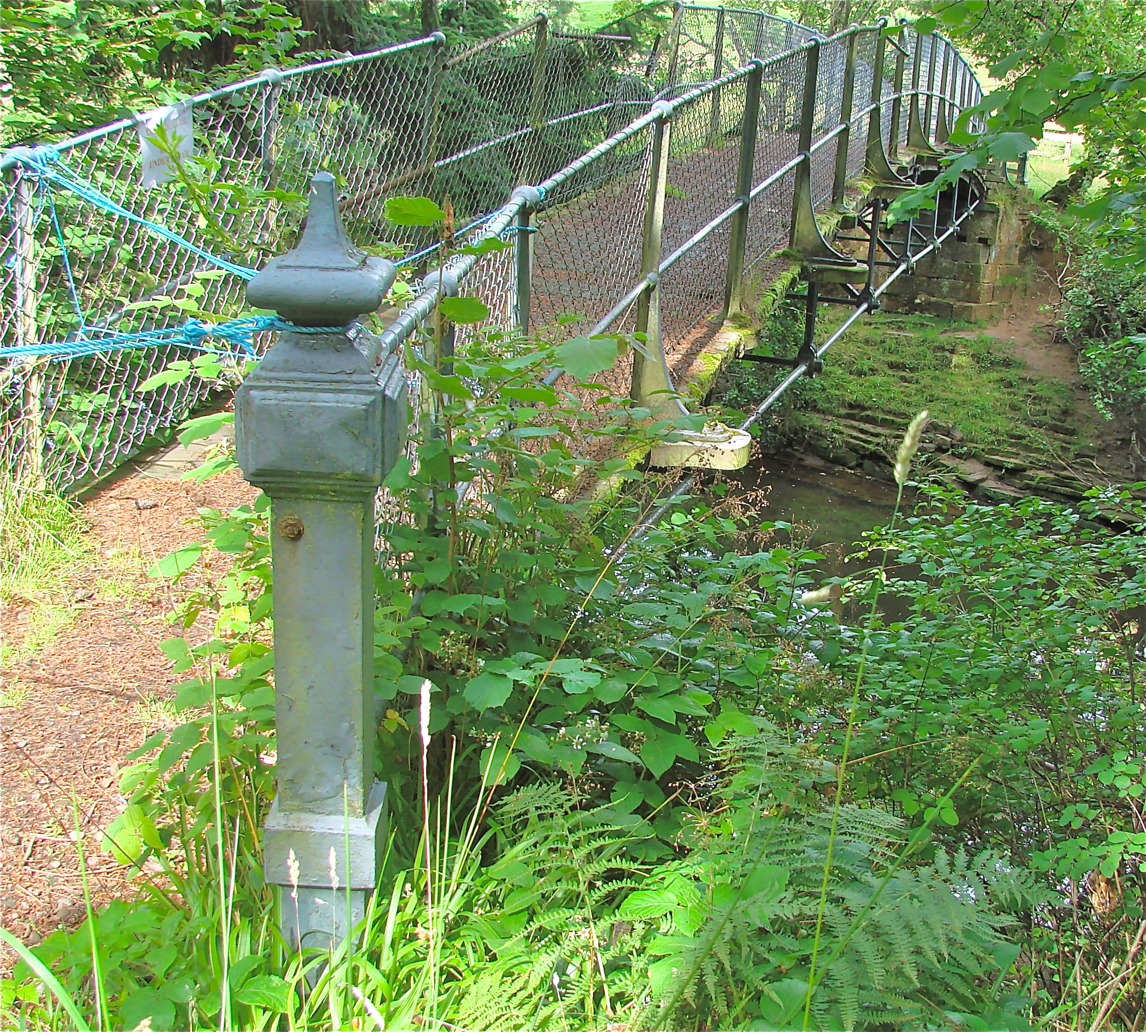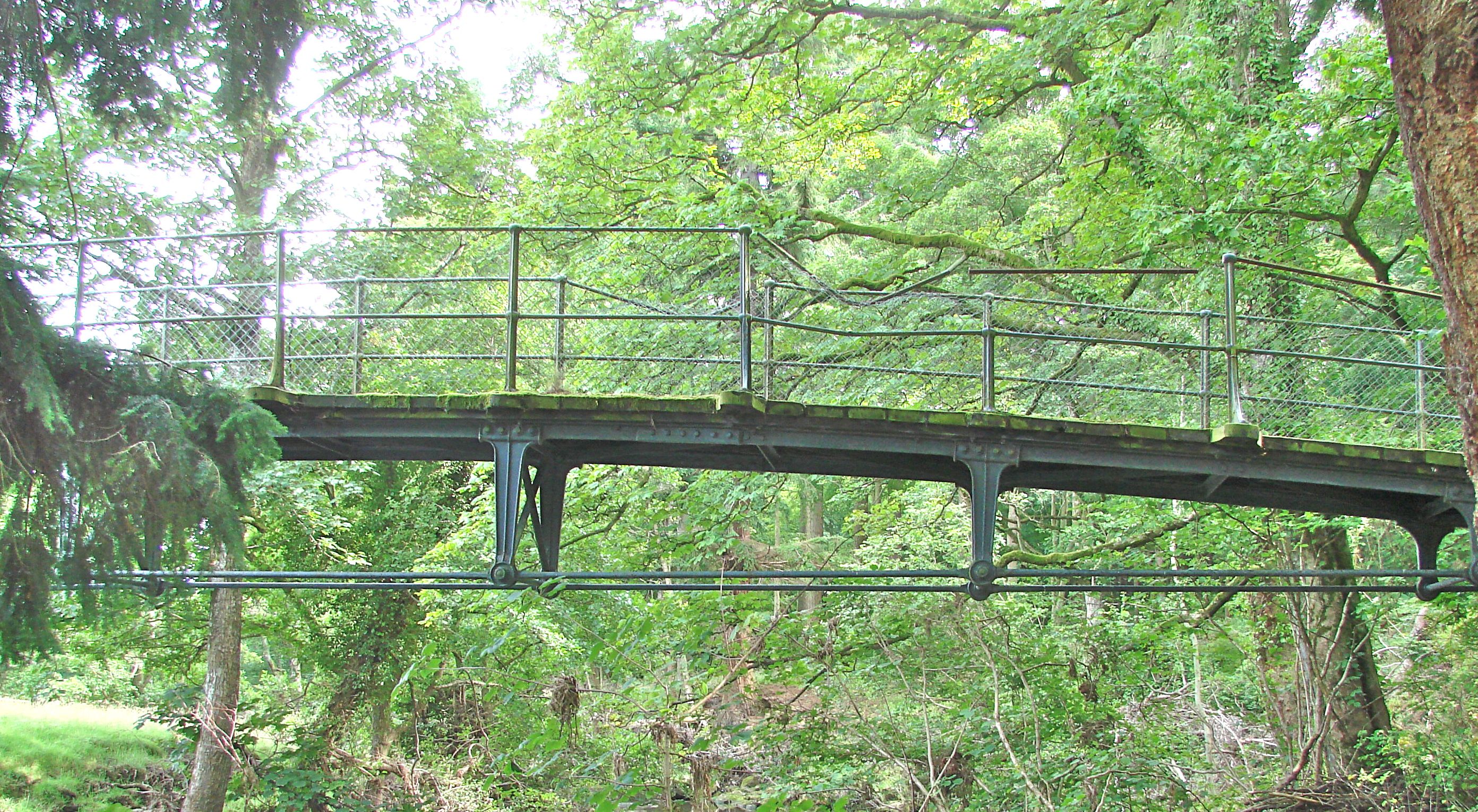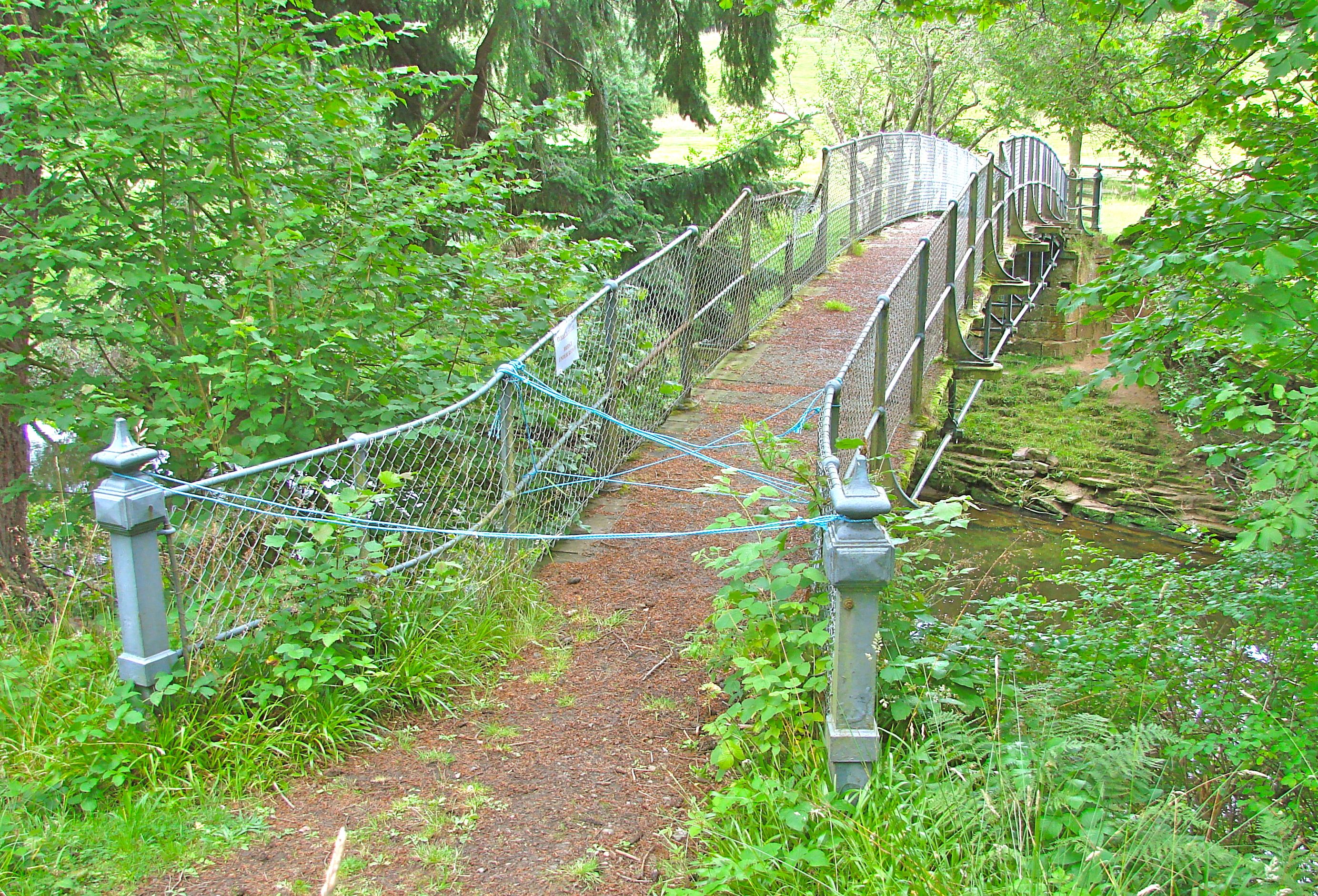 The third bridge is another foot bridge near the ruins of the Hulne Priory which is a suspension bridge probably of 20th century provenance. It too is very original in its construction.