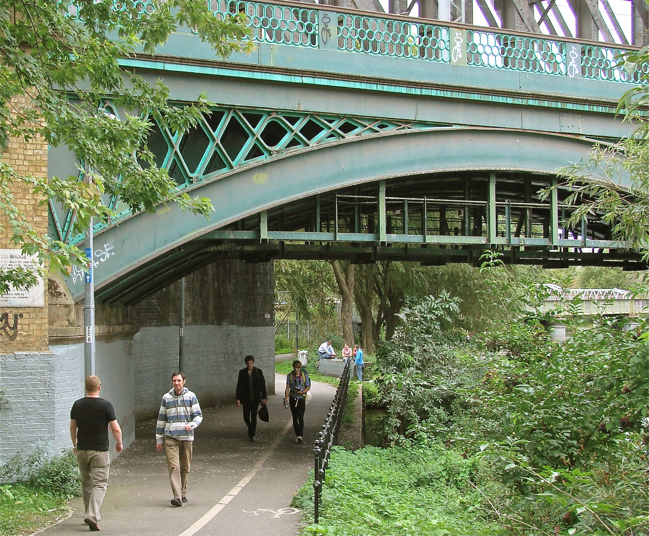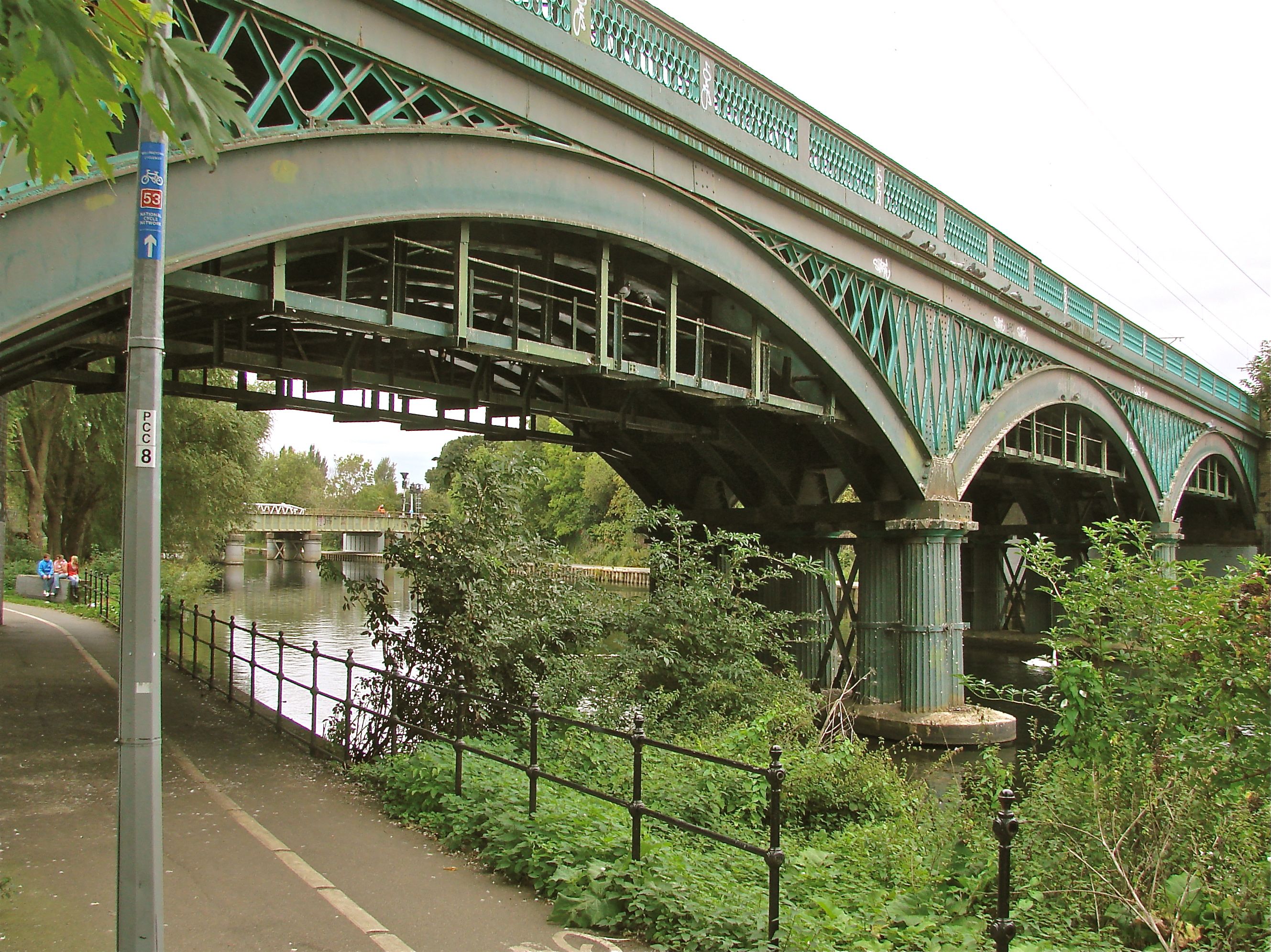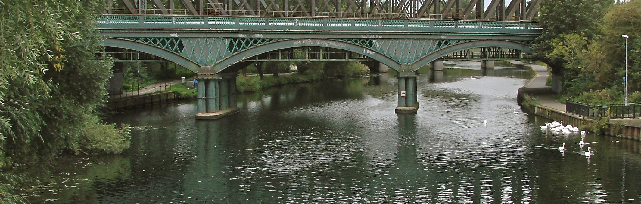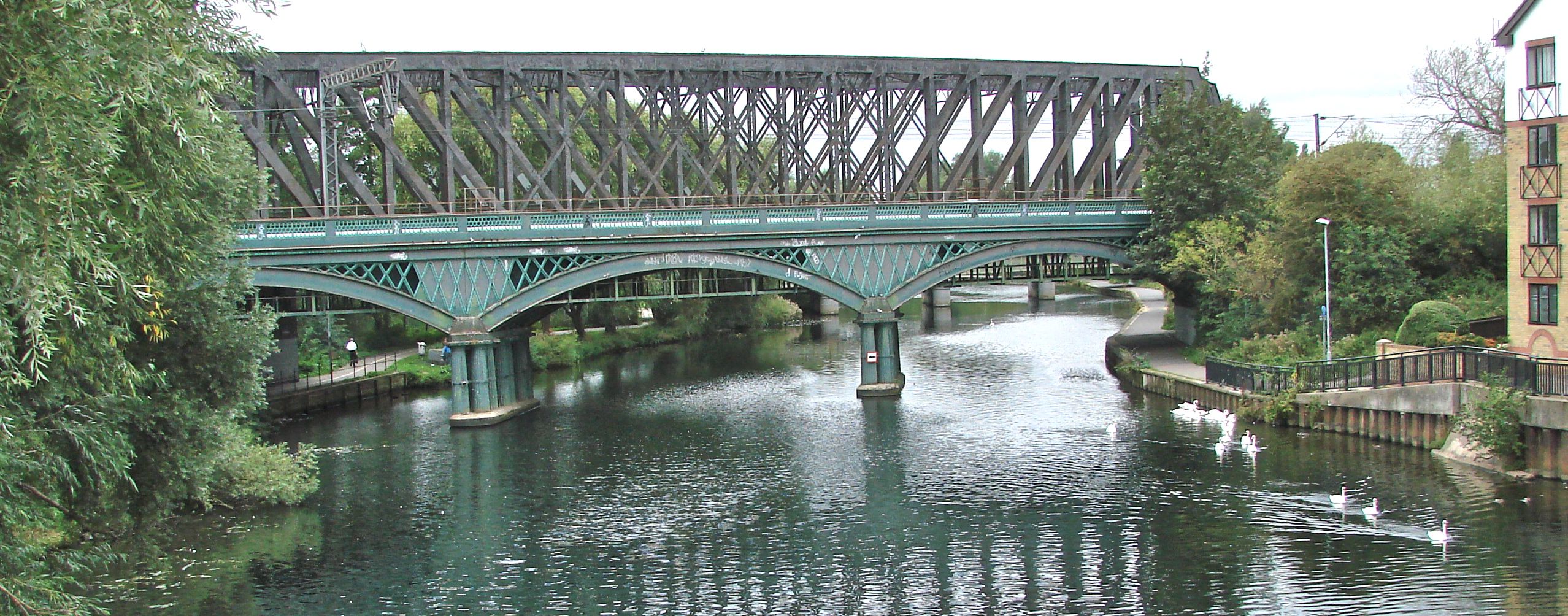 This makes it difficult to find and many Petersborough natives don't know it exists. It is located on A605 which is Oundle Road. Look for the Rail World Museum which is under the masonry arches of the viaducts. From their parking lot you can see the old bridge peeking out under the new truss box bridge as they both cross the River Nene there.